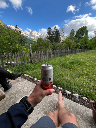Valbone a její okolí je místo s obrovským potenciálem. Dali jsme si pivko na jedné terase s výhledem a potok už šli hledat ubytování - guesthouse Jenny. Velmi příjemní majitelé a také to vypadalo, že mladá dcera tu má jako přivýdělek brigádu s zajišťováním servisu tohoto guesthousu, protože jako jediná uměla anglicky. Večeři jsme si vařili svou a přitom koukali na dokonalé vyhledy na hory. Pak už jen základní povinné úkoly a spát. Ráno chceme jít vzhledem k počasí včas.